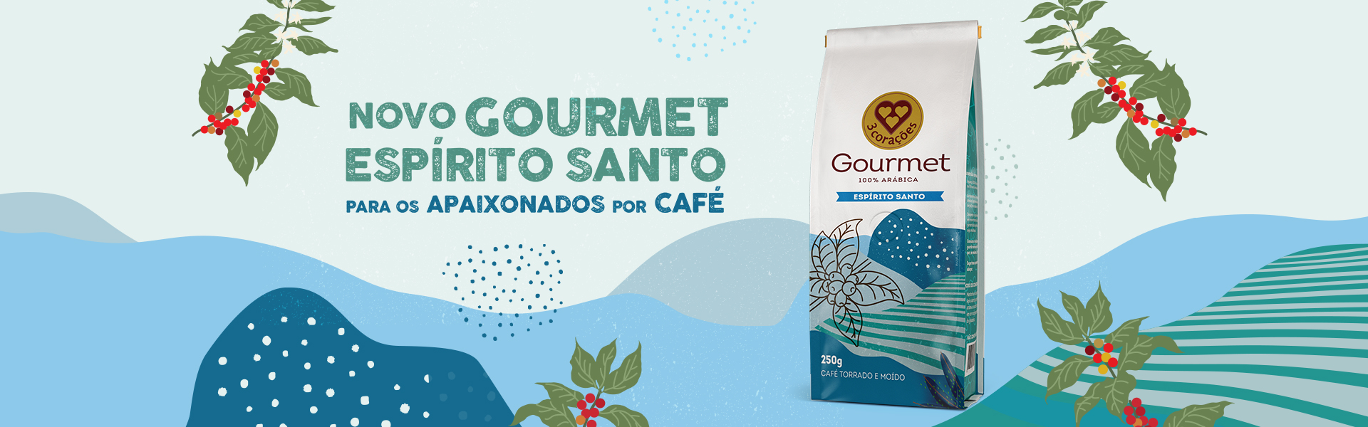 Acaba de chegar mais um lançamento da 3 Corações: o Gourmet Espírito Santo, um café 100% Arábica com notas de frutas amarelas, caramelo e mel, cultivado em regiões montanhosas e frias do Espírito Santo, o segundo maior produtor de café do Brasil.