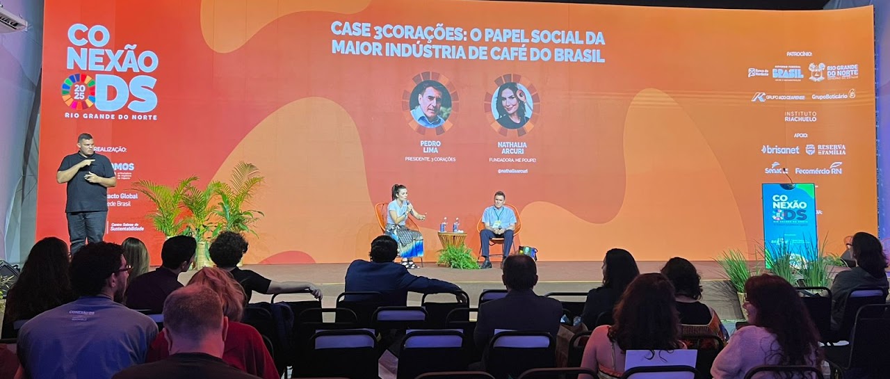 Pedro participou de um painel ao lado de Nathália Arcuri, Fundadora da Me Poupe!, falando sobre o papel social da maior indústria de café do Brasil. Na ocasião, nosso Presidente mostrou como os Projetos Tribos e Florada causam impacto social positivo no público de mulheres e indígenas cafeicultores e materializam o compromisso da 3corações com a construção de um país e mundo mais sustentáveis.
